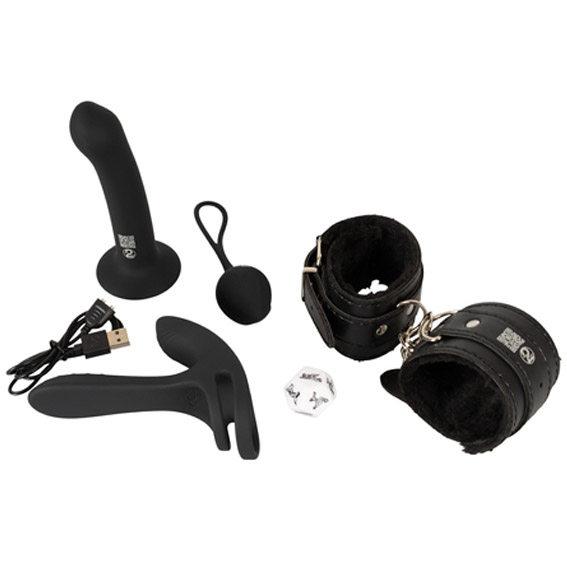 • Mit 3 Silikon-Toys, Handfesseln, Liebeswürfel